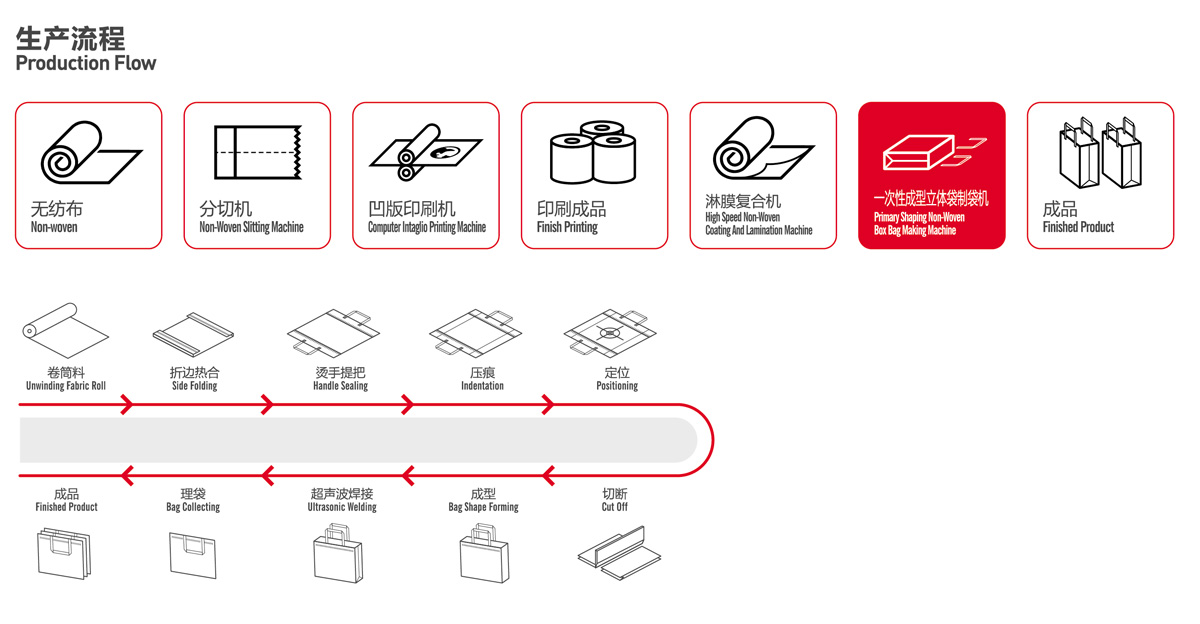 該機(jī)適用于原材料為無(wú)紡布,覆膜無(wú)紡布,專(zhuān)業(yè)生產(chǎn)一次成型覆膜的立體袋(免翻),設(shè)備生產(chǎn)穩(wěn)定,袋子熱合部位牢固,美觀、大方,可反復(fù)利用,主要用于生產(chǎn)無(wú)紡布煙、酒包裝袋,無(wú)紡布飲料包裝袋,禮品袋,酒店廣告袋等無(wú)紡布袋,該機(jī)集機(jī)電為一體,運(yùn)用LCD觸摸屏操作。配以步進(jìn)步式定長(zhǎng),光電跟蹤,電腦自動(dòng)定位,電腦自動(dòng)糾邊,準(zhǔn)確,平穩(wěn),自動(dòng)計(jì)數(shù),即可設(shè)定計(jì)數(shù)報(bào)警,自動(dòng)燙把手,自動(dòng)疊袋等工控裝置。